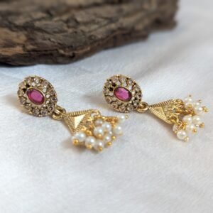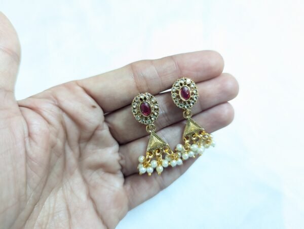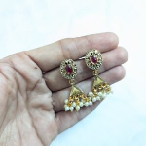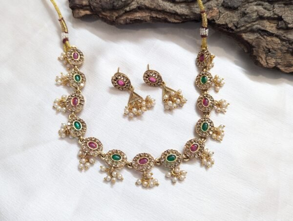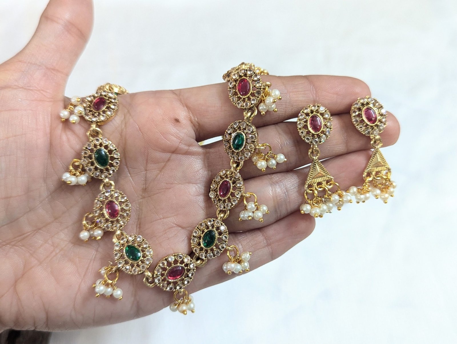 Add a touch of traditional elegance with this ethnic jewelry set. Crafted from brass and gold plated, it features dazzling Kemp stones that beautifully enhance its charm. The set includes one necklace and a matching pair of earrings, perfect for festive occasions and celebrations.