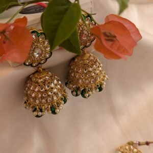 Elevate your festive look with our exquisite Green Jodha-Style Necklace Set with Maangtika. Inspired by royal Mughal elegance, this stunning set features intricate craftsmanship with traditional Kundan work, vibrant green stones, and antique gold detailing. The set includes a statement necklace, matching earrings, and a beautifully coordinated maangtika — perfect for weddings, sangeets, or any celebratory occasion. Add timeless grace to your ensemble with this regal jewelry set that radiates heritage charm and festive grandeur.