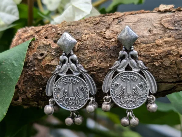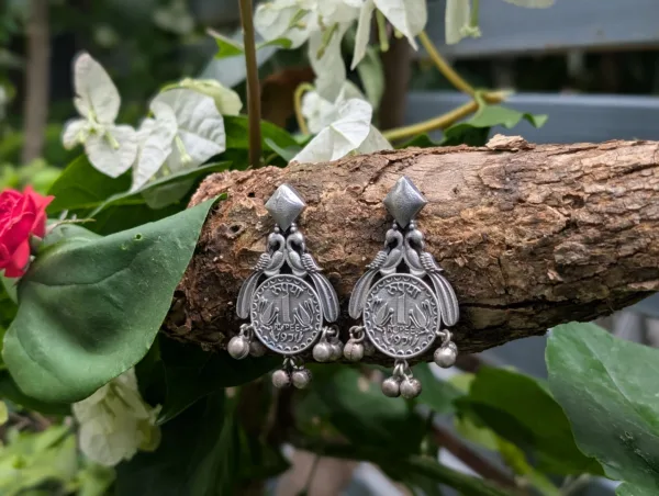 Rooted in tradition, the Mudrika Earrings are silver replica pieces featuring bold motifs and a classic silver finish. Their timeless design makes them a striking accessory for ethnic and festive wear