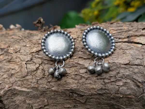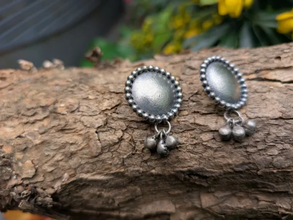 Echoing the rhythm of tradition, the Naadika Earring features a graceful circular design adorned with delicate ghungroos. Crafted in a silver replica finish, it captures the music of movement—perfect for festive wear, dance-inspired looks, or adding a touch of cultural elegance to your day.