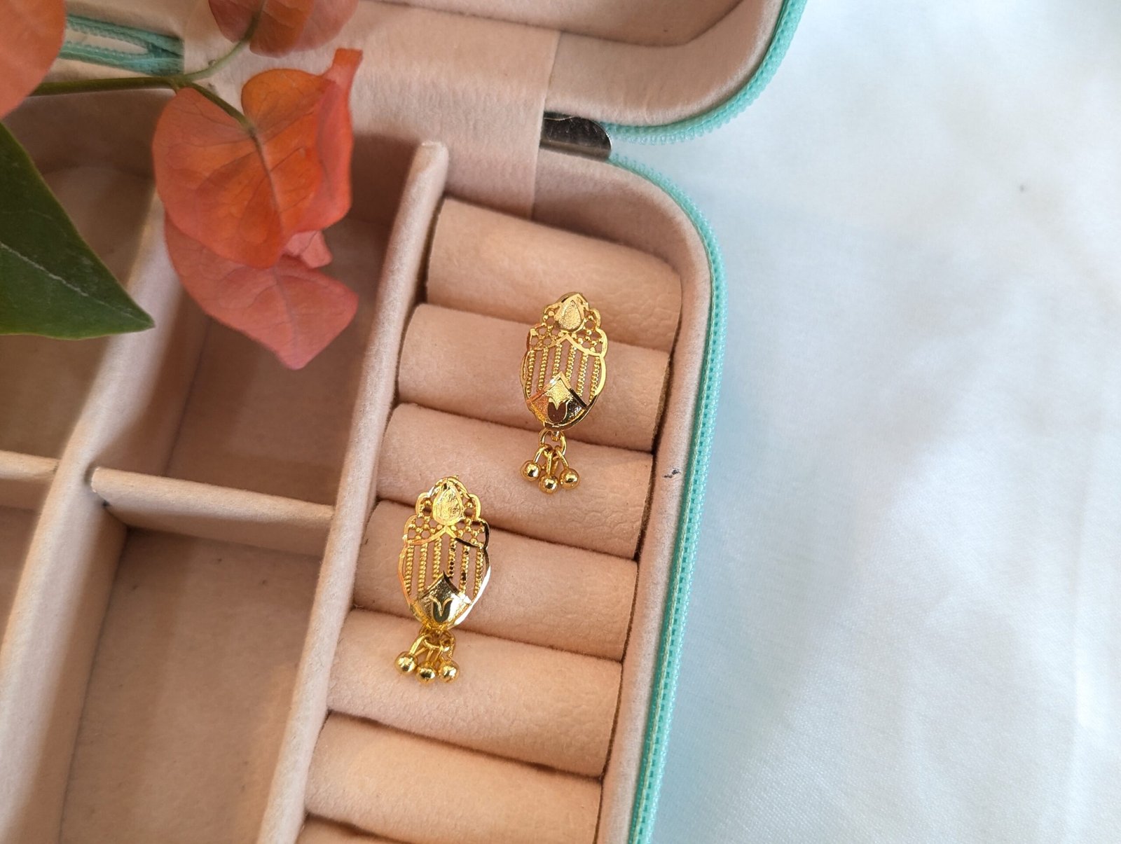 Illuminate your look with Tejvi Earrings, crafted from copper and finished with a radiant 1 gram gold polish. These earrings add a subtle sparkle, perfect for any occasion.